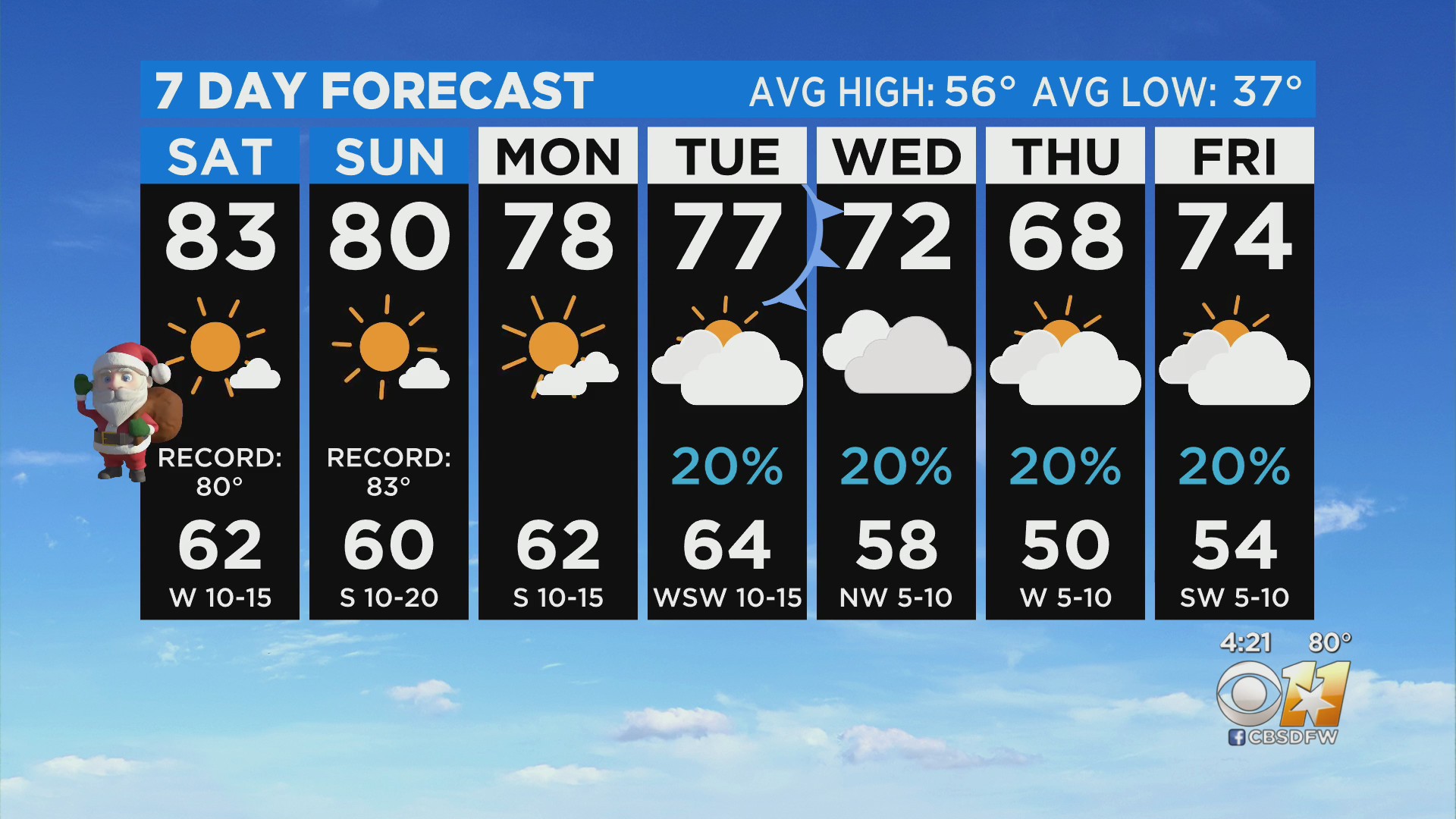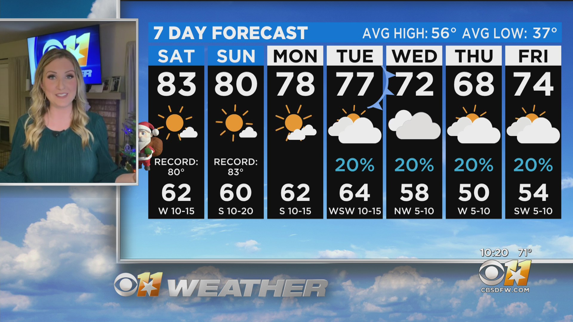 Very Warm, Dry Christmas The high is expected to be 84 degrees on Noel Sidereal day.
